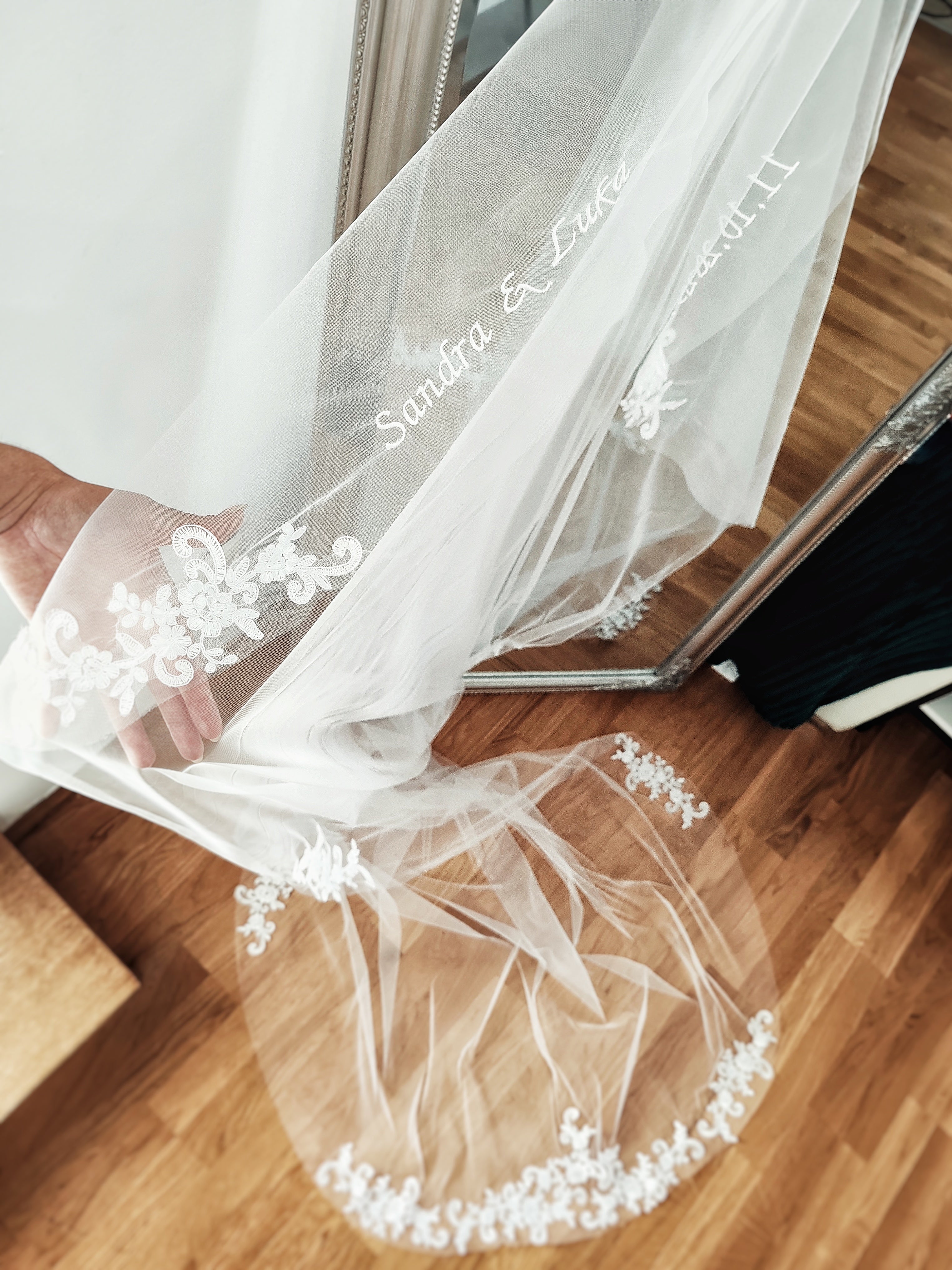Nakon ispunjenog upitnika kontaktiram klijentice kako bismo se dogovorile oko detalja uključujući slanje slike vjenčanice, određivanje boje, izrada skice i vizuala vjenčanog vela i strojnog veza, položaj teksta na tilu i slično. Veo krećem izrađivati tek kada smo obje sigurne da sve odgovara tvojoj želji i viziji!